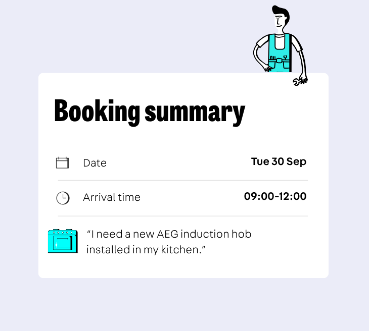 It used to be tricky to find a trusted tradesperson. But we’ve made the whole process seamless – from getting a quote, to securing your slot, to getting your new hob installed.