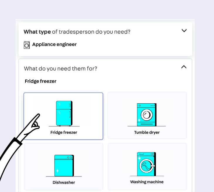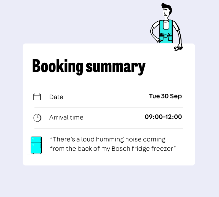 It used to be tricky to find a trusted tradesperson. But we’ve made the whole process seamless – from getting a quote, to securing your slot, to getting your fridge freezer fixed.