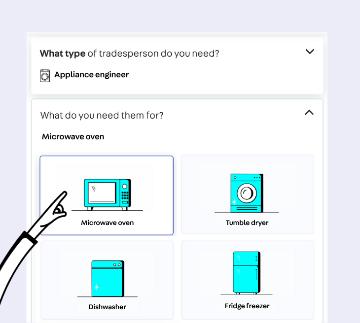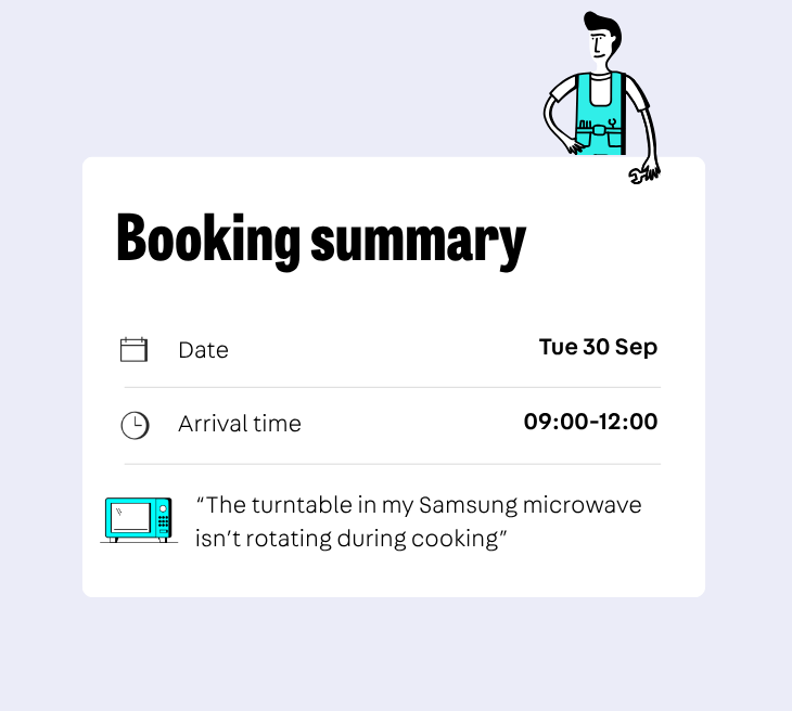 It used to be tricky to find a trusted tradesperson. But we’ve made the whole process seamless – from getting a quote, to securing your slot, to getting your microwave fixed.