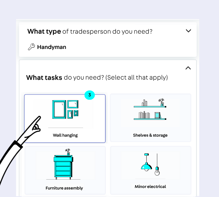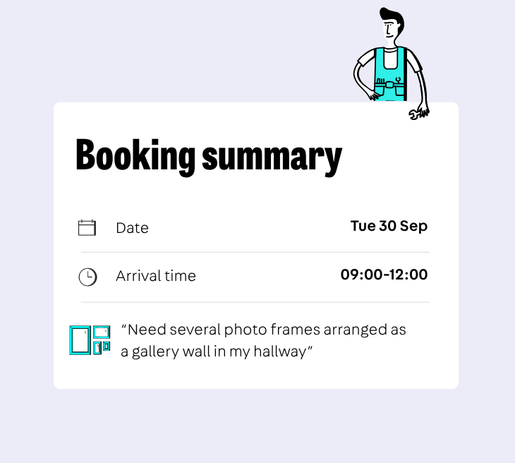 It used to be tricky to find a trusted tradesperson. But we’ve made the whole process seamless – from getting a quote, to securing your slot, to getting your pictures hung.