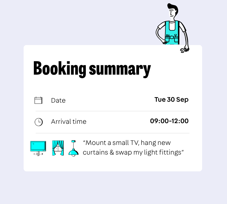 It used to be tricky to find a trusted handyman. But we’ve made the whole process seamless – from getting a quote, to securing your slot, to getting your odd jobs sorted.
